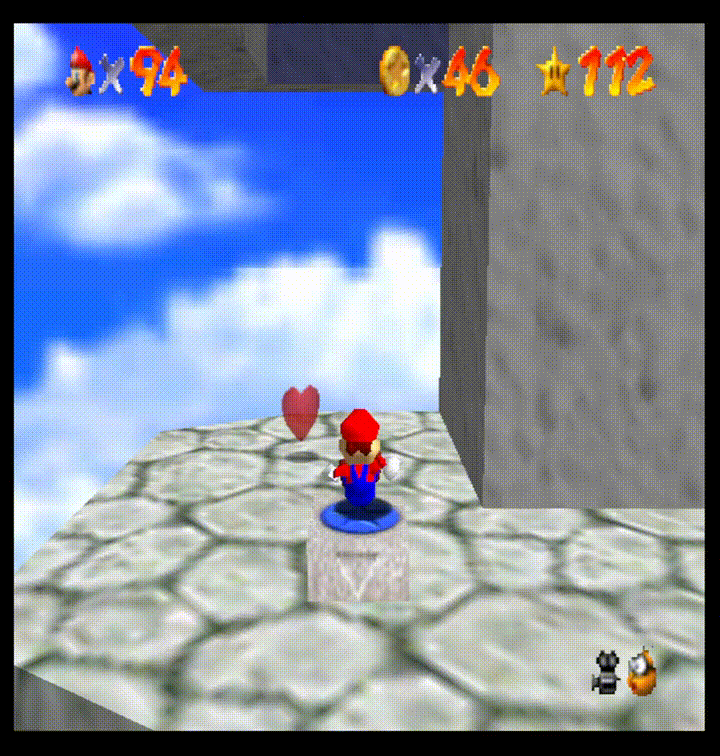 Binnen Super Mario 64 zijn er twee manieren om een schild om mee te bewegen te krijgen: