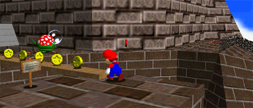 Binnen Super Mario 64 zijn er twee manieren om een schild om mee te bewegen te krijgen: